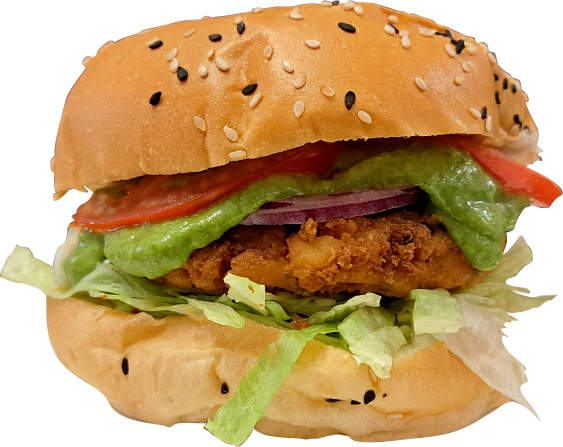 Handmade spiced potato patty, coriander chutney blended with creamy Greek yoghurt, crisp lettuce, juicy tomatoes, red onions