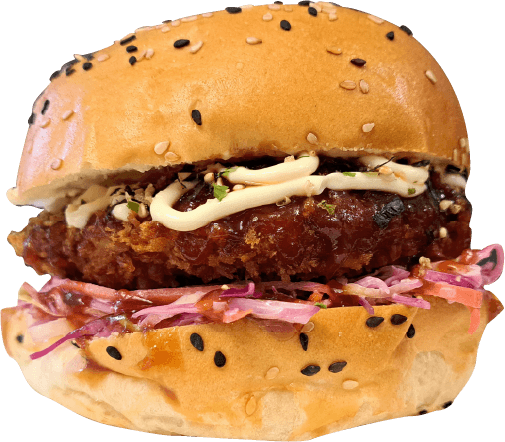 Buttermilk fried chicken coated with Panko breadcrumb on a bed of Japanese cabbage slaw, drizzled with homemade tonkatsu sauce and creamy kewpie mayo, sprinkled with furikake seasoning